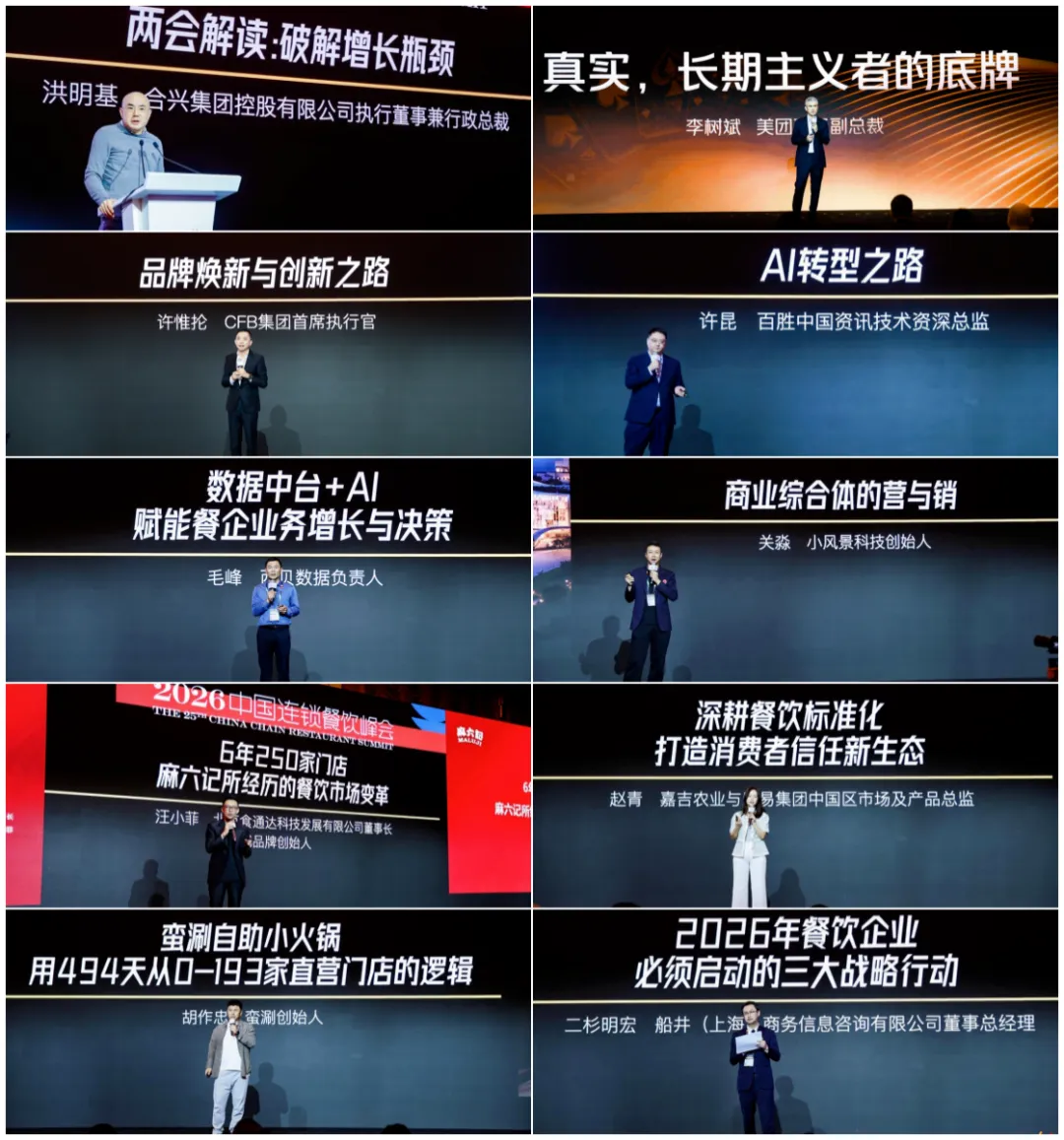 美团高级副总裁李树斌带来题为《真实,长期主义者的底牌》的演讲。他表示,餐饮行业正从流量竞争转向信任竞争,消费者更关注“最新评价”和真实体验;北京食通达科技发展有限公司董事长、麻六记品牌创始人汪小菲发表了题为《6年250店,麻六记所经历的餐饮市场变革》的演讲,汪小菲回顾了三十年深耕历程,分享如何通过研发与生产的全链路自主掌控,为品牌长效发展筑牢根基。